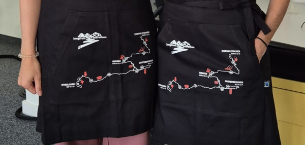 Die Kochschürze mit der original Jungfrau-Marathon-Strecke ist auch im Duo mit der 300 g Jungfrau-Marathon-Pasta erhältlich.