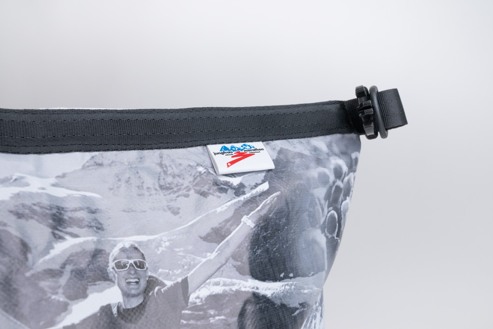 This waterproof DryBag is printed with highlights of the Jungfrau-Marathon. The DryBag is 37x55cm and produced in Switzerland.