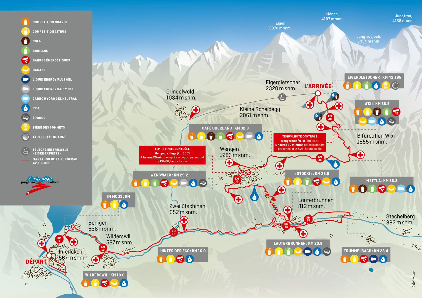 Les coureurs qui passent aux postes de contrôle intermédiaires à Wengen ou Wixi dans un temps supérieur à celui fixé par l’organisateur sont expulsés du classement et perdent leur droit aux prestations liées au marathon (ravitaillement, poste sanitaire, classement chronométrique, liste des résultats, médaille, tee-shirt de «finisher», etc.). Les temps de passage suivants écoulés donnent aussitôt la fin du marathon. Le temps est déterminant et non pas le ‘Pace-Bike’: